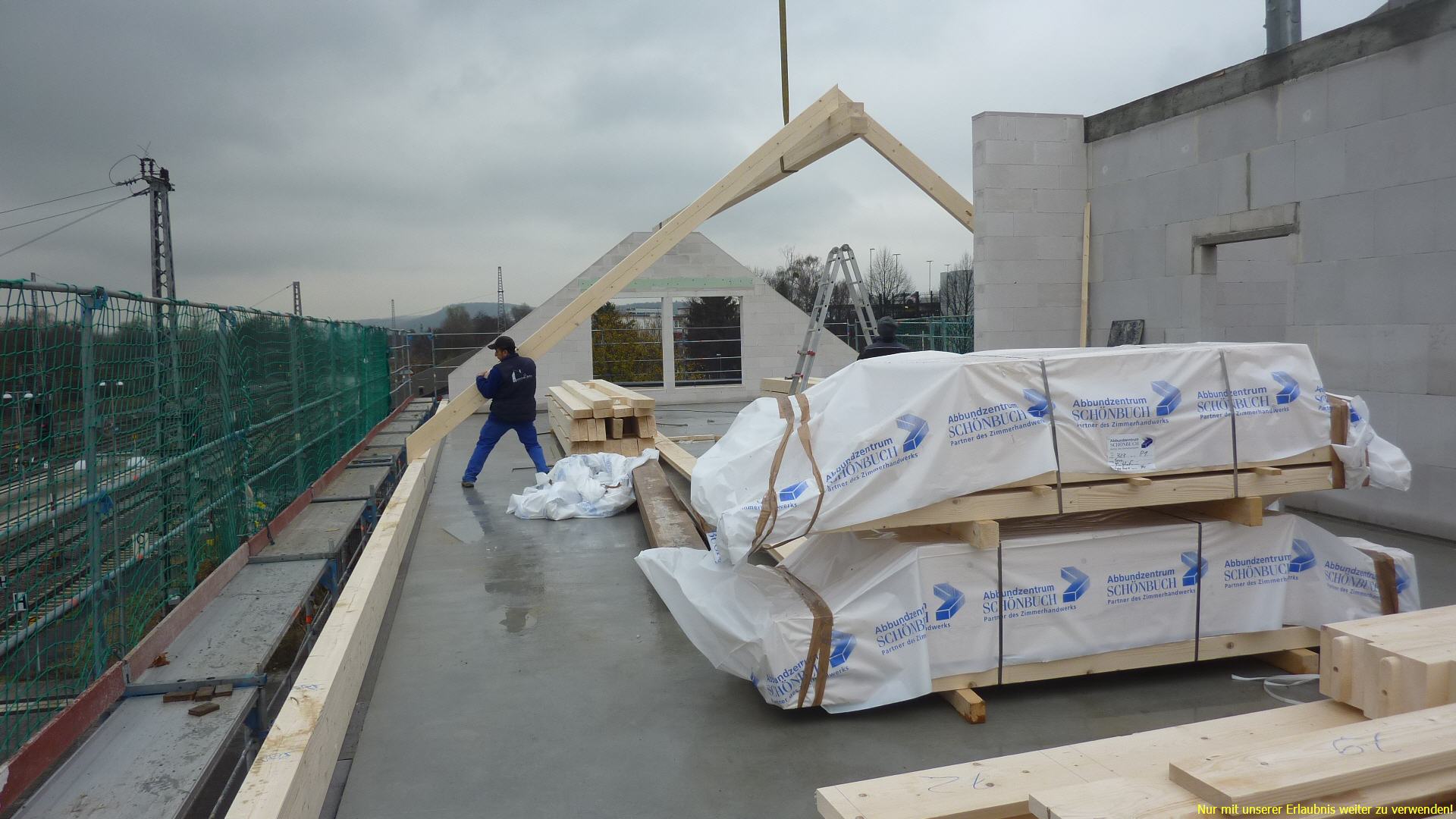 09.12.2014 - Der Dachstuhlaufschlag beginnt - früher als geplant. |